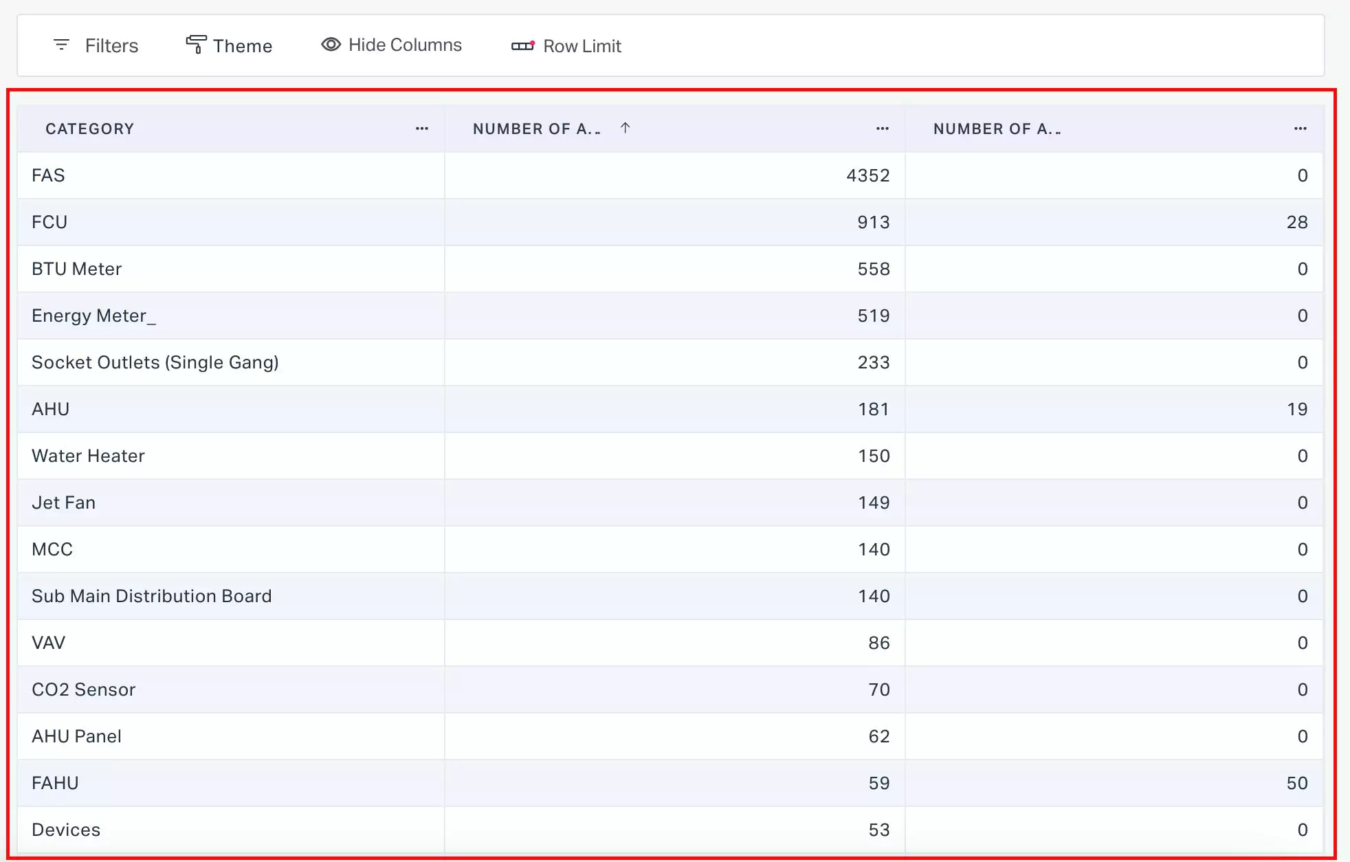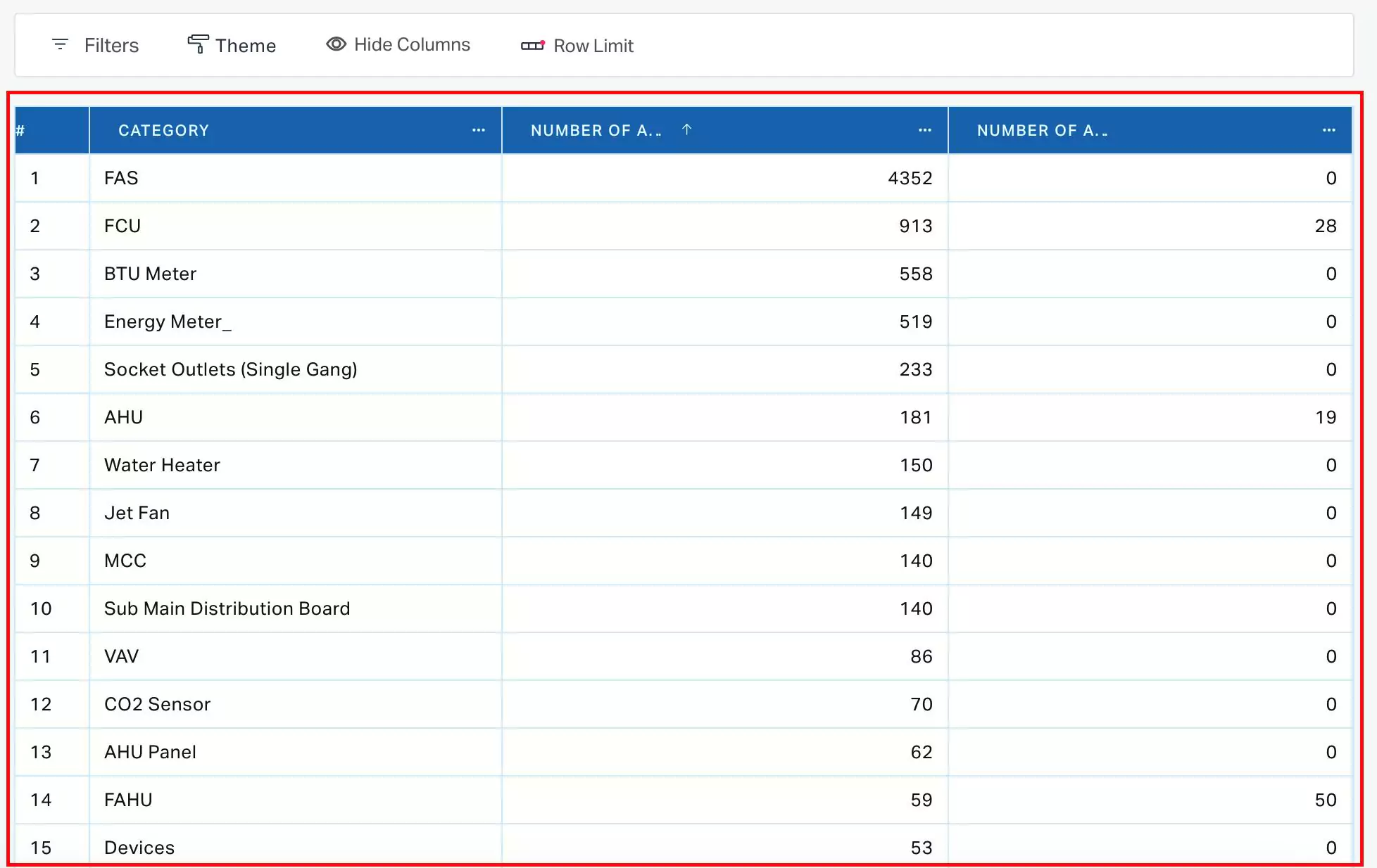You can add rows and corresponding values from the Dimensions and Measures sections, respectively. In a pivot table, a row represents a specific category or grouping of data, while the value in that row indicates the total or aggregate value for that particular category. For example, in an asset data pivot table, a row might represent a specific asset category, while the value in that row would represent the total asset count in that category. The values are computed and displayed based on the measuring parameters set, such as count, sum, average, minimum, or maximum value.