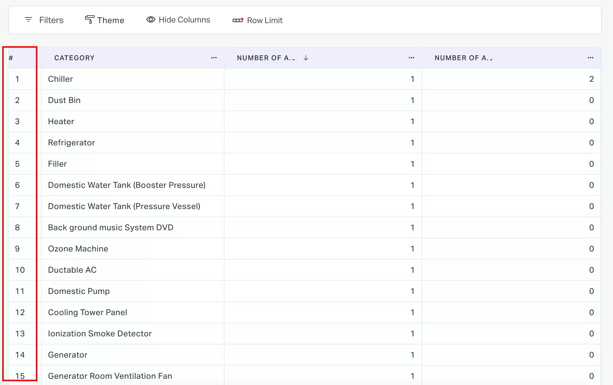Show row numbers - The serial number for rows in the pivot table. Enabling this field displays the row numbers as shown below.