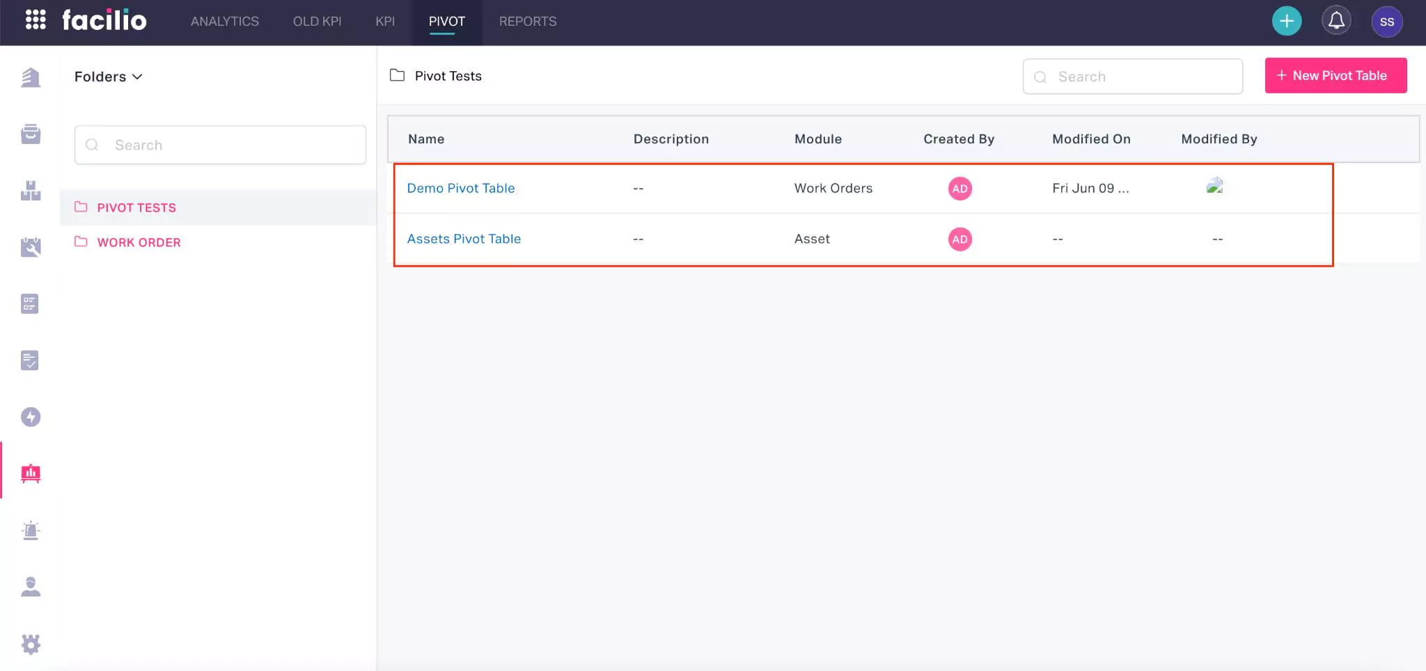 Note: You can choose the existing folder or create a new folder by adding the folder name in the field.Module - The module corresponding to which the pivot table is being created